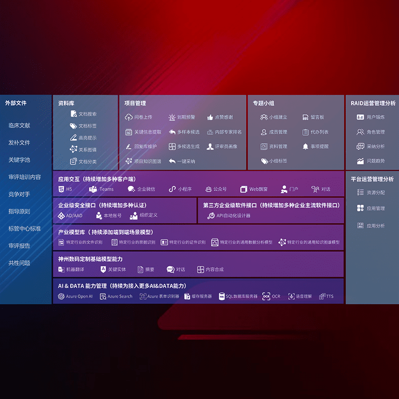 医疗器械产品上市前,,,,要熟悉严格与繁复评审标准,,整理分析监管机构指导文件中的海量信息。。。企业急需一个智能化解决方案,,,提升知识管理效率,,提高评审通过率,,,以提升其市场竞争力。。。。